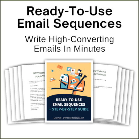 Write emails with confidence using ready-to-use sequences you can customize in minutes. You’ll get 6 complete email sequences plus a simple guide to help you engage subscribers, build trust, and increase sales.